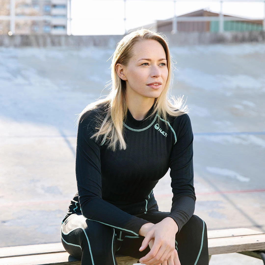 Kevyellä Active Dry ribbineuloksella olevat naisten tekniset alushousut. Tehokkaasti kosteutta siirtävä materiaali pitää ihon pinnan kuivan tuntuisena ulkona liikkuessa. Soveltuu hiihtoon, lasketteluun ja ulkoiluun. Materiaali on lisäksi ihoa vasten pehmeä ja se kuivuu nopeasti. Pehmeät tasosaumat sekä ihoa vasten miellyttävä vyötärörakenne lisäävät käyttömukavuutta. Haltin ECO tuote sillä materiaali on tehty kierrätetystä polyesteristä.