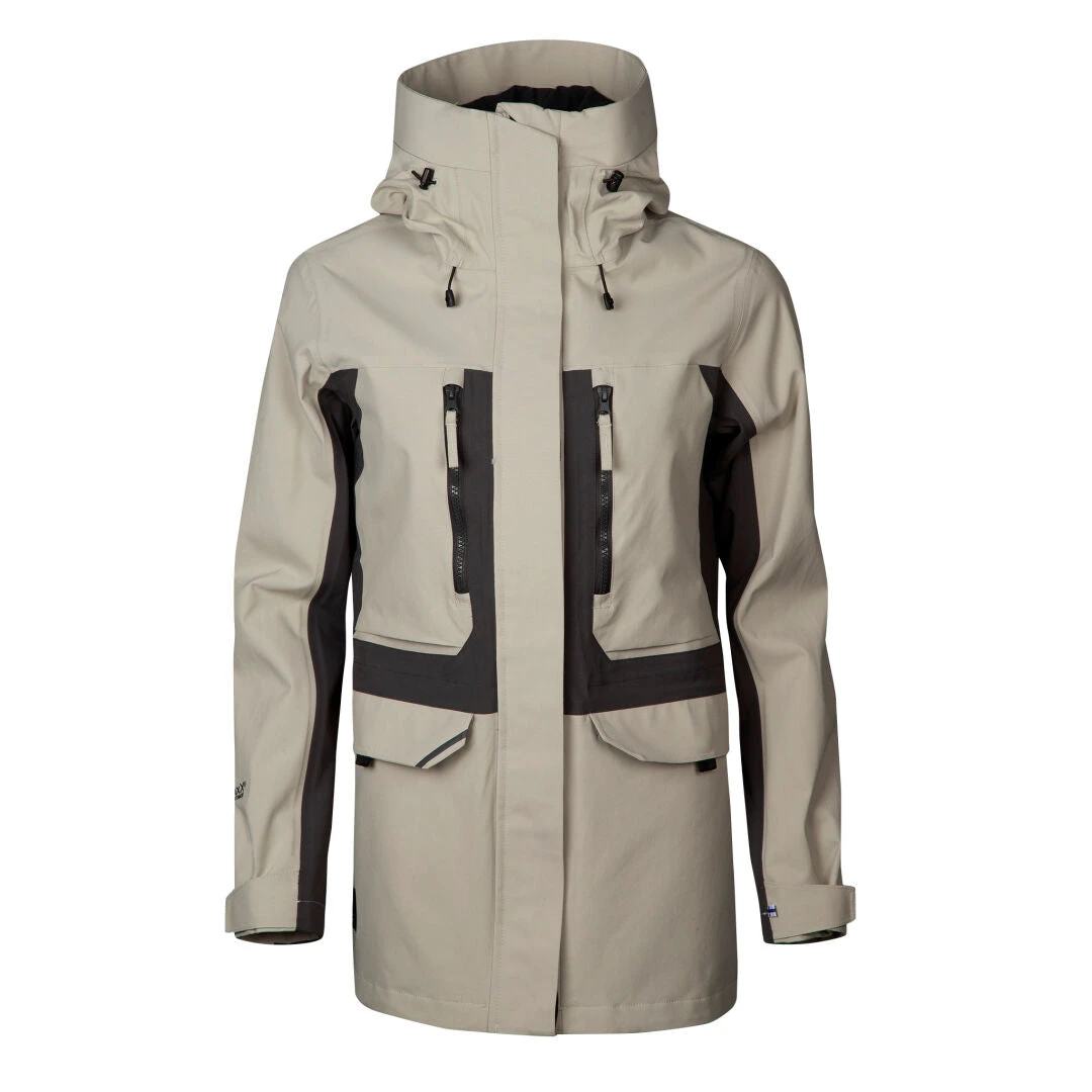 Tämän parka takin materiaali on yhdistelmä vahvaa, kierrätettyä nylonmateriaalia ja kulutusta kestävää ripstop-materiaalia. Vedenpitävä, tuulenpitävä ja hengittävä DrymaxX®-kalvo antaa suojan haastavaa säätä vastaan. Takissa on mekaaniset ilmanvaihtoaukot käsivarsien alla, jotka maksimoivat ilmanvirtauksen lämpimissä tilanteissa.